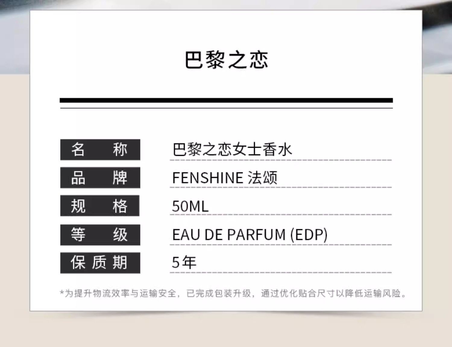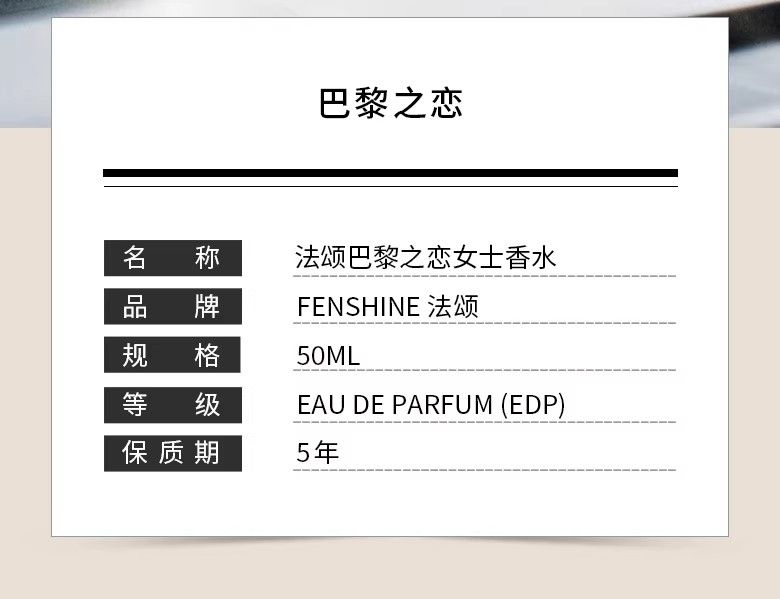 送禮禮物FENSHINE法頌巴黎之戀女士香水反轉清新淡香升溫生日