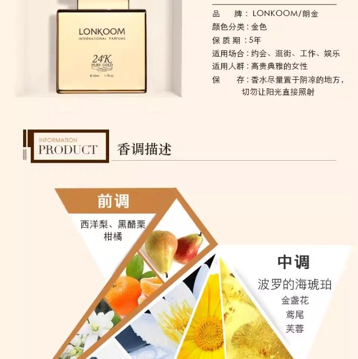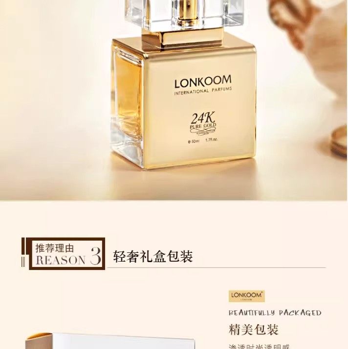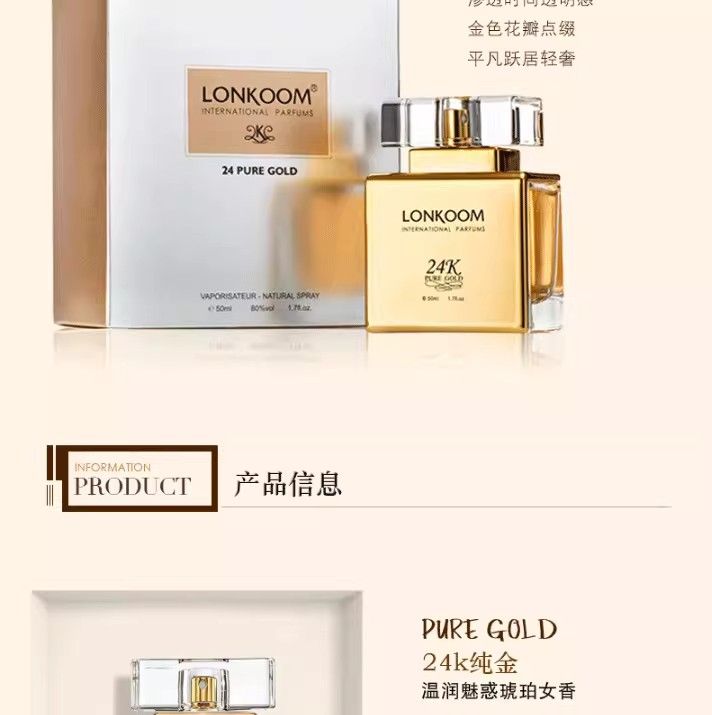 LONKOOM朗金24K系列女士香水男士高端花香果香馥奇香調50ml送10ml