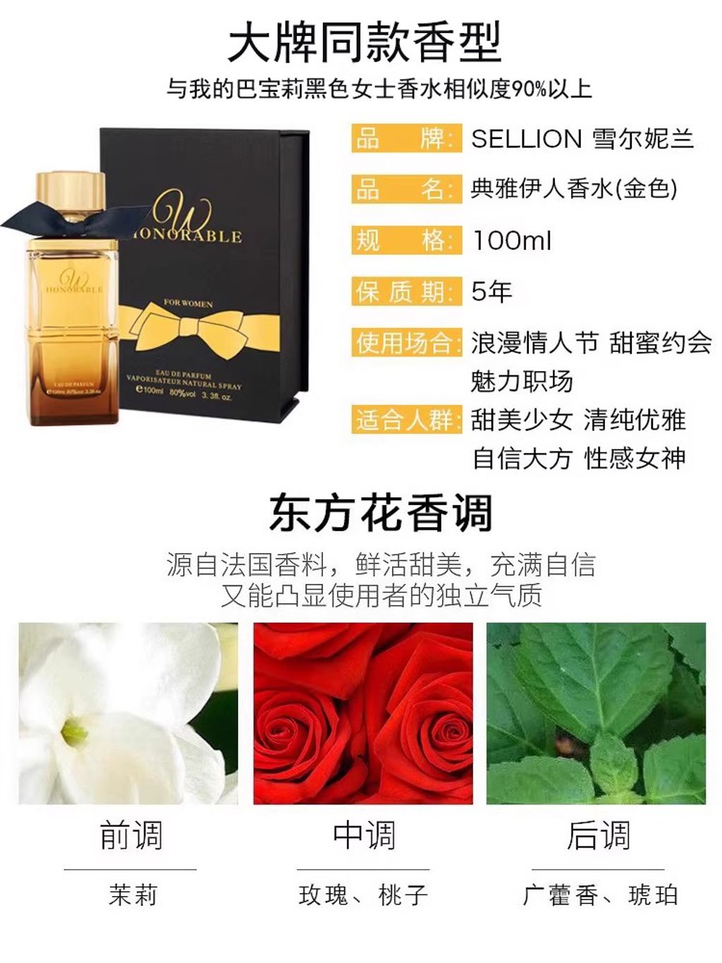 sellion雪爾妮蘭典雅伊人女士香水持久茉莉花香節日禮盒大瓶正品